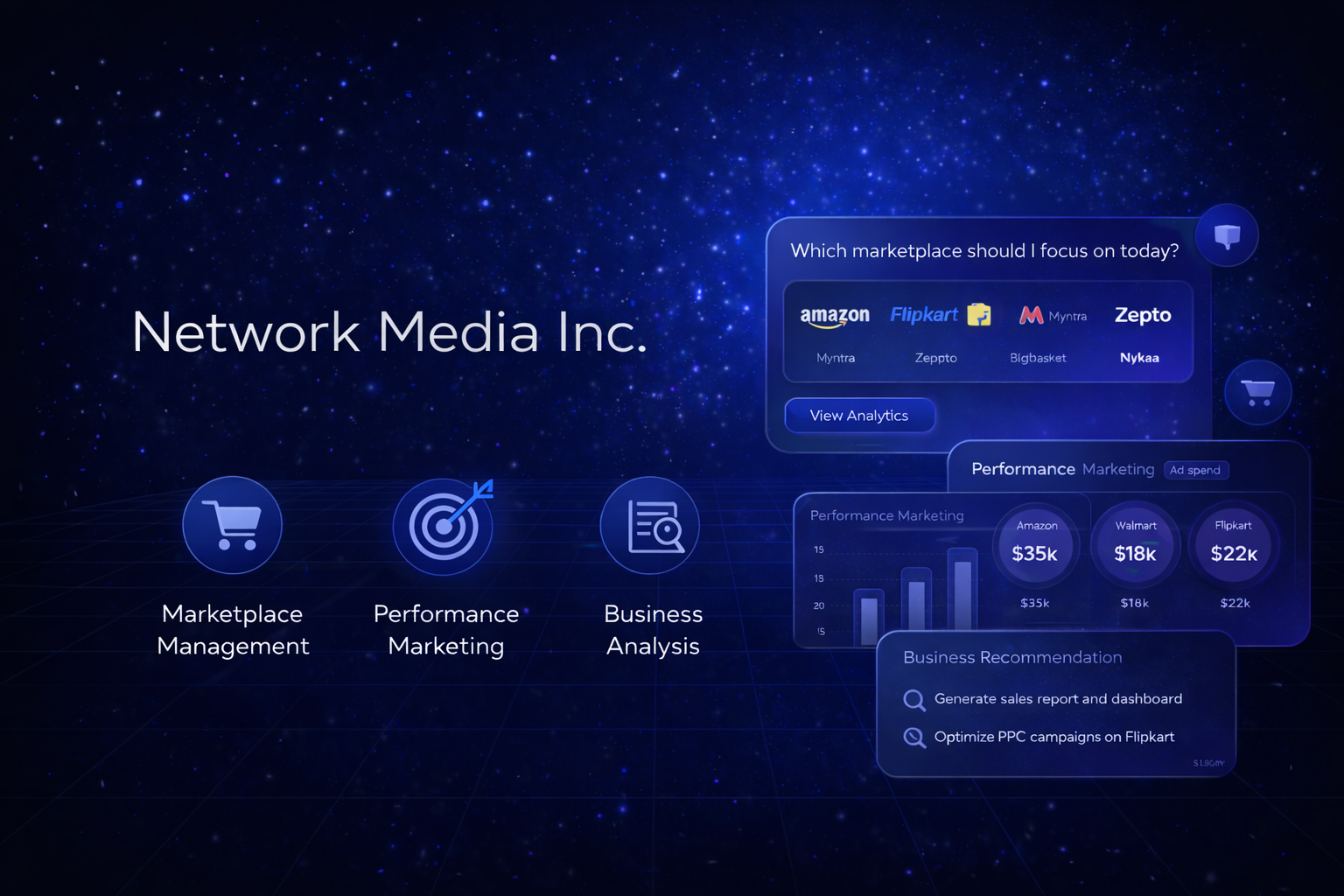 Network Media helps brands scale across Amazon, Flipkart, Myntra, Nykaa, Blinkit, Zepto,Instamart & more.